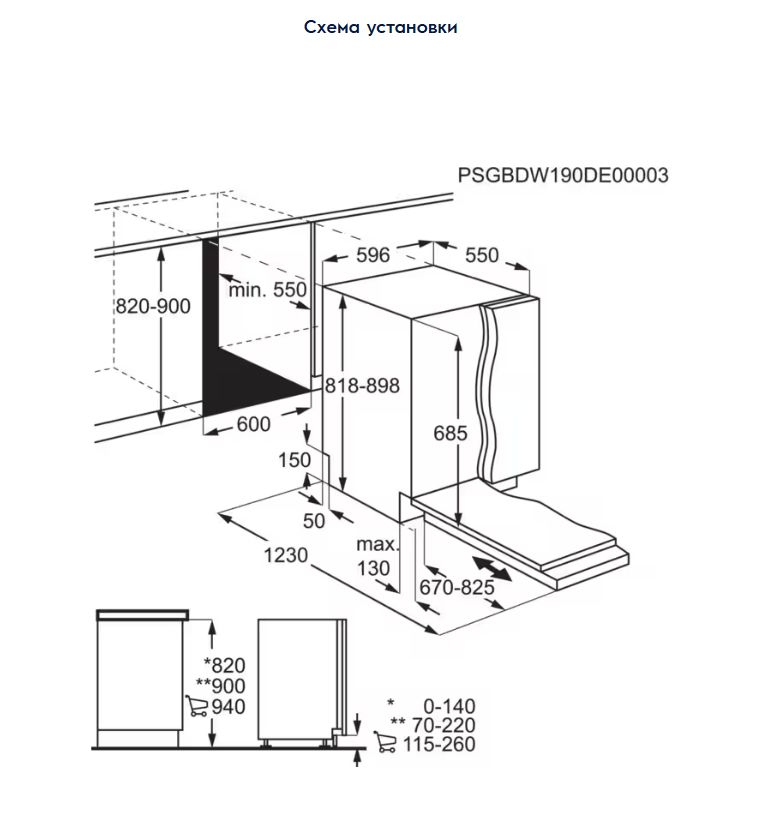 Схема встраивания для посудомоечной машины Electrolux EEZ69410W