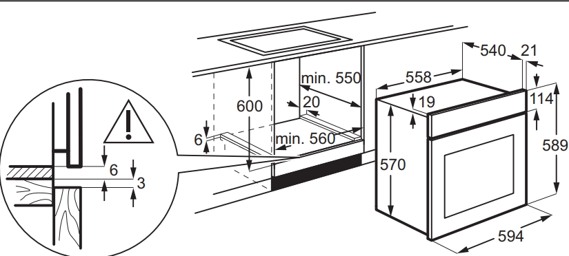 Схема встраивания для духового шкафа Electrolux EOD3H40BX