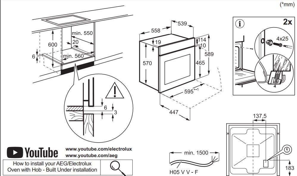 Схема встраивания 1 для духового шкафа Electrolux EOF5F50BV
