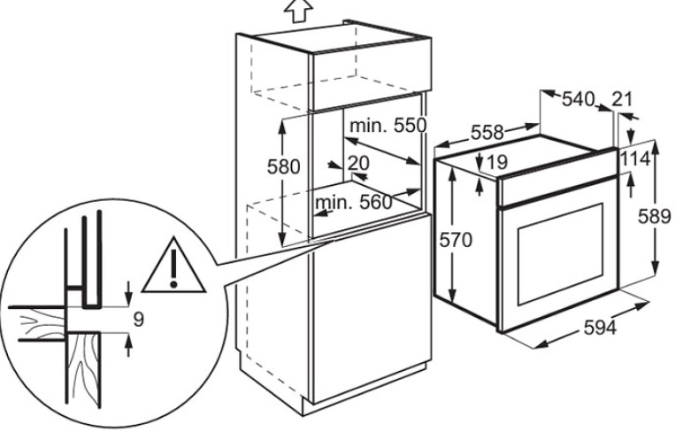 Схема встраивания для духового шкафа Electrolux KODEF70BZ