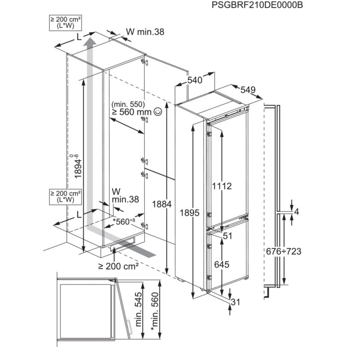 Схема встраивания для холодильника Electrolux LNS6TE19S