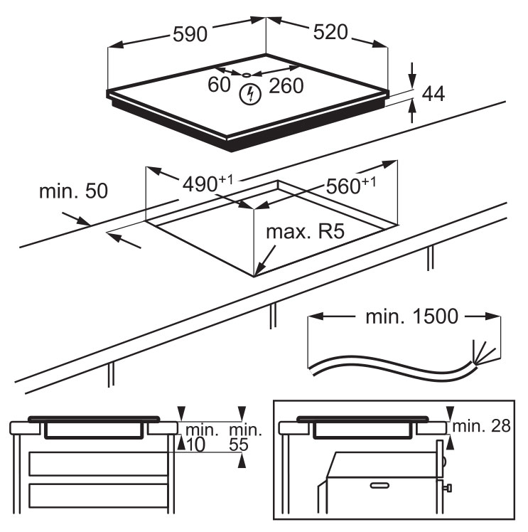 Схема встраивания для варочной панели Electrolux EIV63443CT