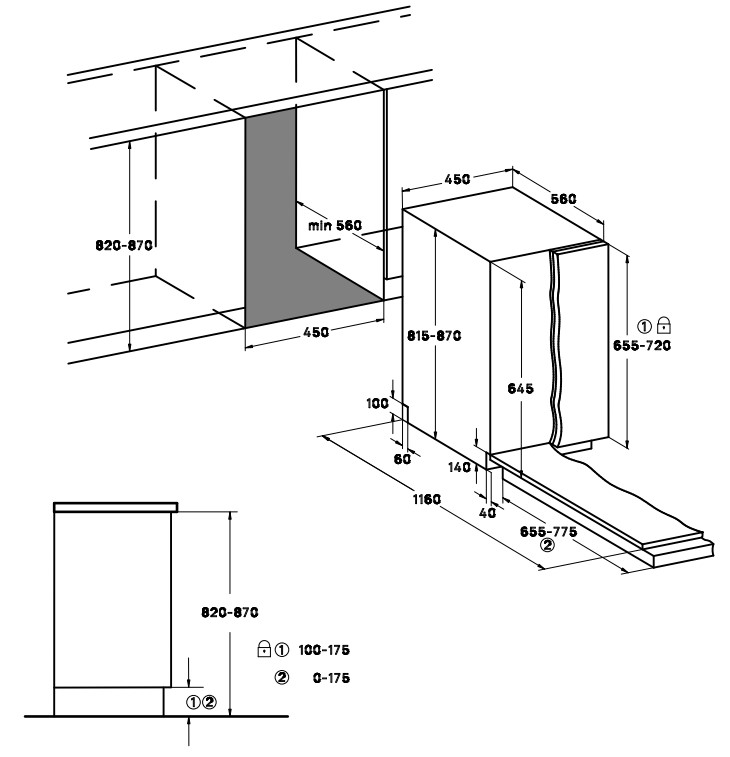 Схема встраивания для посудомоечной машины Vard VDI413L