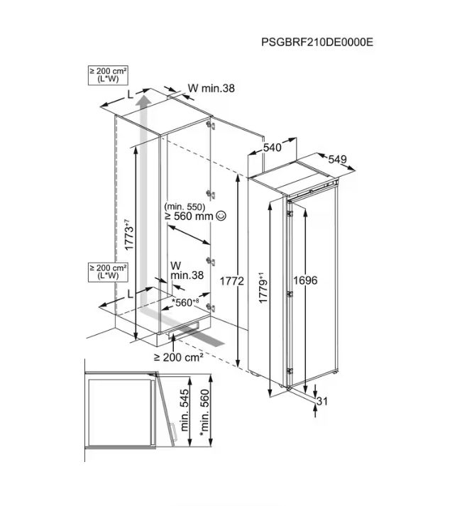 Схема встраивания для холодильника Electrolux ERD6DE18S4