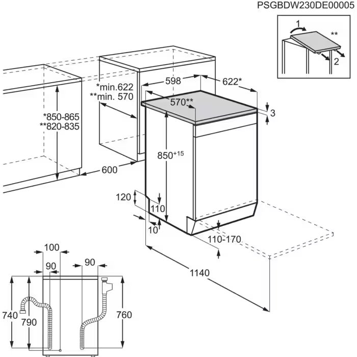 Схема встраивания для посудомоечной машины Electrolux ESA47210SW