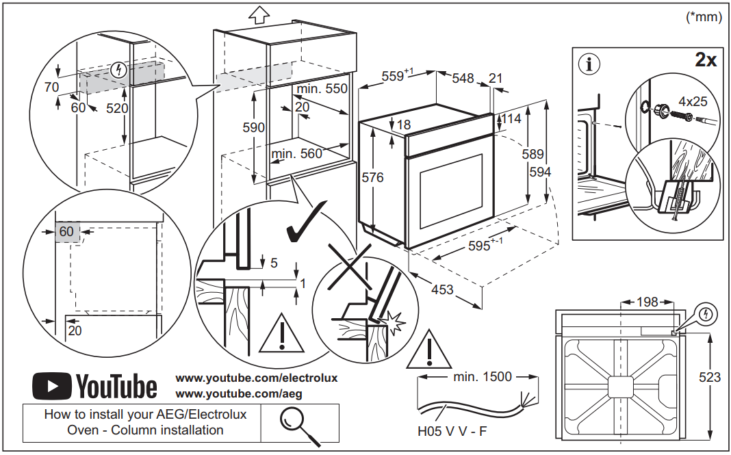 Схема встраивания 2 для духового шкафа Electrolux LOE8F38X