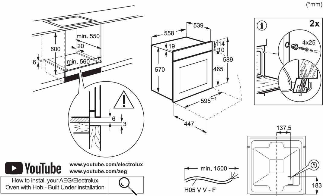 Схема встраивания 1 для духового шкафа Electrolux EOD5F70BX