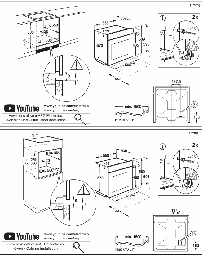 Схема встраивания для духового шкафа Electrolux LOH3H00BK