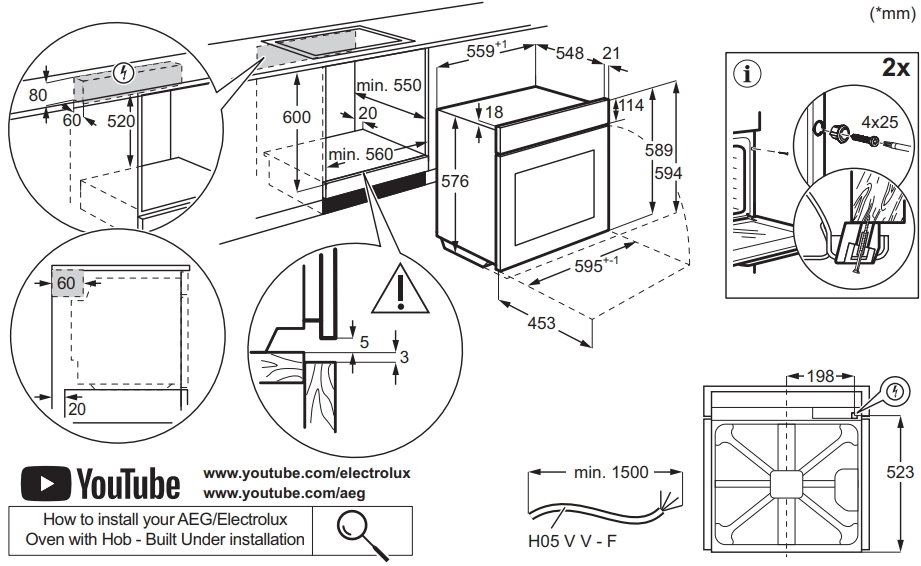 Схема встраивания 1 для духового шкафа Electrolux KODEF75X2
