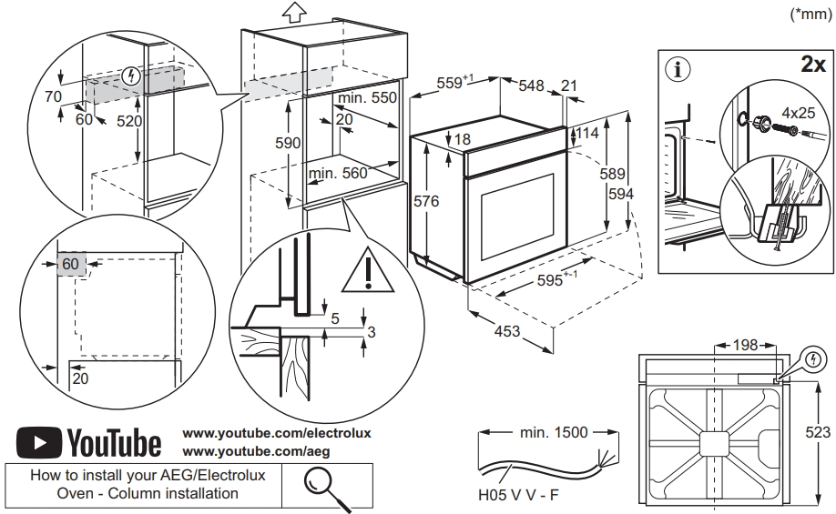 Схема встраивания 2 для духового шкафа Electrolux KODEF75X2