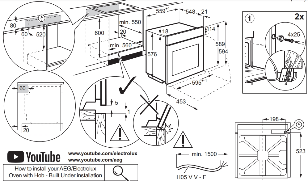 Схема встраивания 1 для духового шкафа Electrolux LOE8P39Z