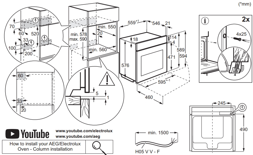 Схема встраивания 2 для духового шкафа Electrolux EOE9P3ST