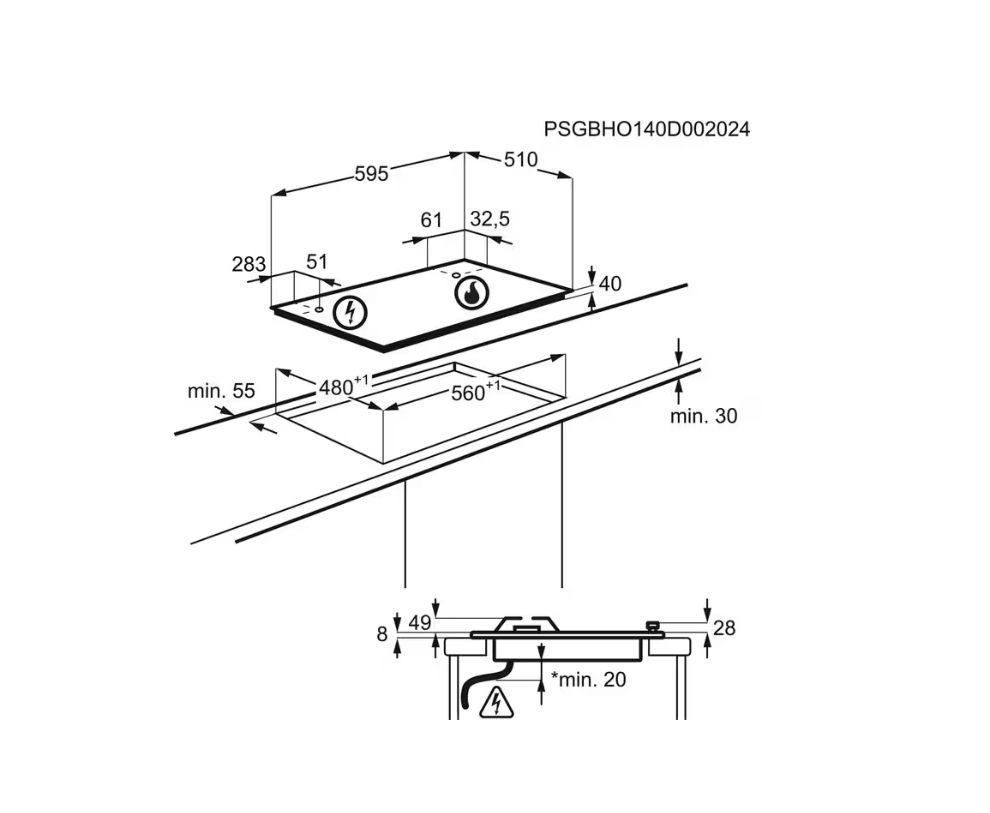 Схема встраивания для варочной панели Electrolux KGS6424BX