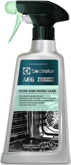 Чистящее средство для духовых шкафов и микроволновых печей Electrolux M3OCS200 OVEN and MICRO CARE удаляет стойкие жировые загрязнения. Спрей можно использовать для очистки грилей, кухонных вытяжек и даже столешниц.