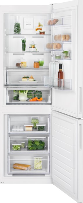 Холодильник Electrolux RNC7ME32W2 состоит из основной и морозильной камеры. Этот функциональный прибор станет надёжным помощником в поддержании свежести продуктов. У него внушительный общий объём — 348 литров. В обоих отделениях можно легко разместить необходимые продукты. Класс энергоэффективности A++ гарантирует низкое потребление электроэнергии, что позволит сэкономить на счетах за электричество. Уровень шума не превышает 42 дБ, что делает его практически незаметным на фоне повседневных звуков кухни.
