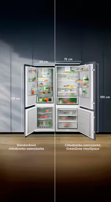 Ключевые преимущества - Вместительный общий объем 376 литров с зоной свежести для длительного хранения продуктов.