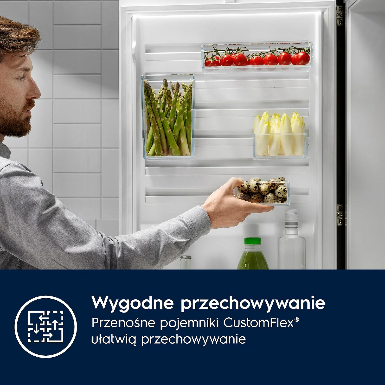 Встраиваемый холодильник с морозильником Electrolux ENT6ME19S — это современное решение для хранения продуктов, объединяющее в себе функциональность, эргономику и стильный дизайн. Благодаря своим компактным размерам (188.4 см в высоту, 54 см в ширину и 54.9 см в глубину), он идеально впишется в любую кухню, сохраняя при этом общий объем 269 литров для хранения продуктов.