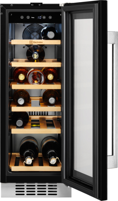 Electrolux ERW 0673 AOA — узкий винный шкаф встраиваемого типа. Модель снабжена шестью деревянными полками, на которых можно разместить до 20 бутылок типа Бордо. Корпус прибора дополнен перенавешиваемой дверцей с защитой от УФ-излучения. Сенсорная панель управления с цифровой индикацией служит дополнительному комфорту при эксплуатации устройства.
