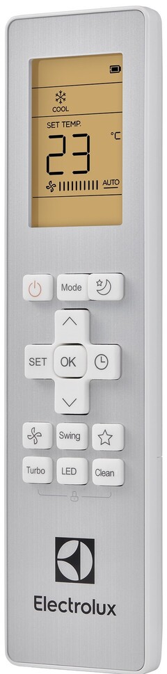 Electrolux EACS-24HSM/N8-V2 — стильный настенный климатический прибор серии Smartline, созданный для бытового использования в помещениях до 70 м². Элегантный белый корпус внутреннего блока с цифровым дисплеем и подсветкой гармонично вписывается в современную обстановку, не привлекая лишнего внимания, а внешний агрегат тоже выполнен в белом цвете, что упрощает визуальную интеграцию на фасадах и балконах. Вертикальная установка внутренней панели обеспечивает аккуратный вид и экономию места; компактные габариты прибора позволяют разместить его даже в ограниченных условиях без ущерба для дизайна интерьера: высота внутреннего блока 33,7 см, ширина 108,2 см, глубина 23,4 см, вес 14,8 кг, наружный блок имеет высоту 67,3 см, ширину 89 см, глубину 34,2 см и весит 47,9 кг. Корпоративный стиль подчеркнут простыми линиями и нейтральным оттенком, что делает устройство универсальным решением для жилых комнат, кабинетов и студий.