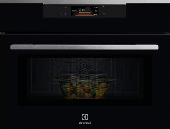 Микроволновая печь Electrolux KVMBE09X обладает выразительным современным обликом: строгий черный корпус в сочетании с элементами из нержавеющей стали делает прибор стильным акцентом любой встроенной кухни. Панель управления выполнена в электронном исполнении с LCD дисплеем и сенсорными Touch Control переключателями, что обеспечивает удобство настройки режимов и быстрый запуск. Откидная дверца с рукояткой открывается плавно, внутри — вместительная камера объемом 44 л с эмалевым покрытием, легко очищаемым и стойким к пятнам. Галогенное освещение автоматически включается при открытии дверцы, позволяя контролировать процесс приготовления без лишних действий.
