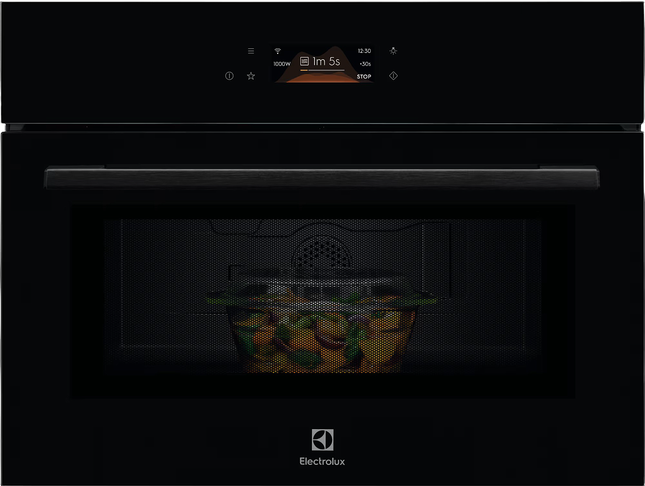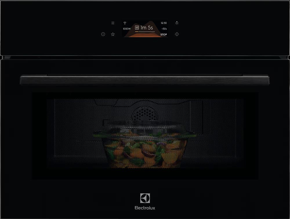 Встраиваемая микроволновая печь Electrolux LVM8E08Z имеет строгую черную отделку и точные геометрические пропорции корпуса создают элегантный и сдержанный образ, который гармонично впишется в интерьер современной кухни. Высота прибора составляет 45.6 см при ширине 59.5 см и глубине 57.1 см, что соответствует стандартным требованиям для встраиваемых решений; размеры ниши 46 х 56 х 55 см позволяют аккуратно интегрировать агрегат в мебельный модуль. Внешний стиль лаконичен: откидная дверца с ручкой делает открытие удобным и интуитивным, а гладкая лицевая панель с сенсорными переключателями Touch Control и ЖК-дисплеем подчеркивает технологичность. Черный цвет поверхности выгодно сочетается с матовыми и глянцевыми фасадами, придавая пространству глубину и респектабельность.