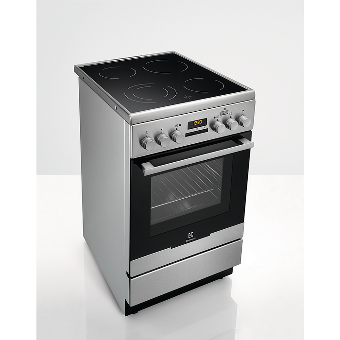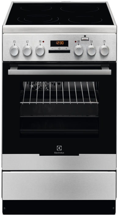 Плита Electrolux EKC954907X выполнена из стеклокерамики в традиционном черном цвете. Устройство предусматривает наличие электрической варочной поверхности и духовки. Для легкого управления с фасадной стороны расположены поворотные переключатели и цифровой дисплей. Варочная поверхность имеет 4 нагревательные зона. Одна из них имеет возможность расширения, что очень удобно при использовании крупногабаритной посуды.