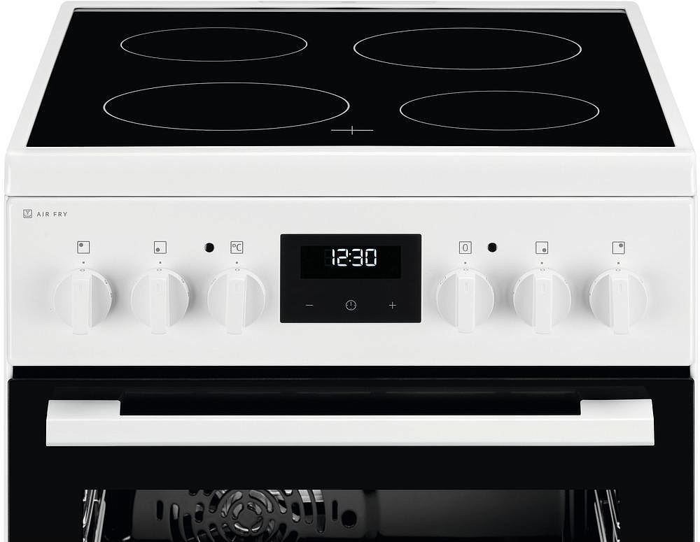 Электрическая плита Electrolux RKR540201W в белом цвете оборудована варочной поверхностью с 4 конфорками, а также духовым шкафом объемом в 57 литра. Поверхность мгновенно реагирует на ваши команды, усиливая, уменьшая или отключая нагрев, а индикация остаточного тепла не позволит вам обжечься. Так же изделие оснащено удобным электронным таймером, который включает звуковой сигнал, как только истечет время приготовления блюда.