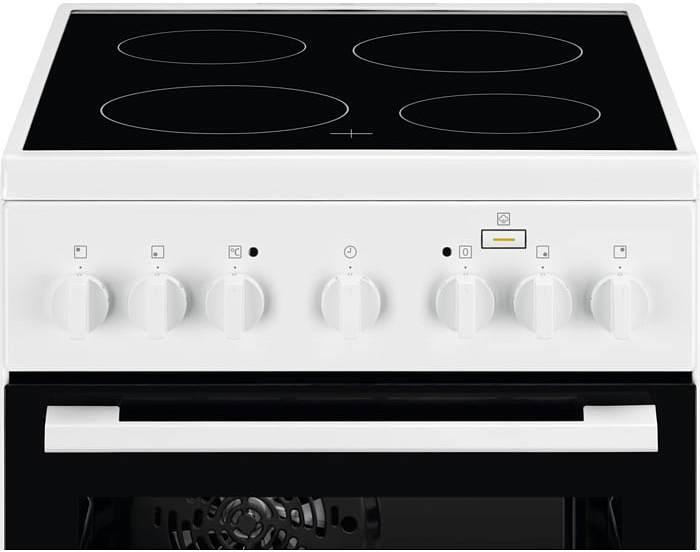 У электрической плиты Electrolux RKR560101W есть четыре конфорки и духовка, объём которой составляет 54 л. Она хорошо подходит для приготовления как повседневной еды, так и угощения для праздничного стола. 10 рабочих режимов позволяют разнообразить меню. Используйте обычную или щадящую конвекцию, чтобы обеспечить безупречное пропекание продуктов либо высушить фрукты и овощи. Гриль придётся по душе тем, кому нравятся мясо и рыба, зажаренные до золотистой хрустящей корочки. Функция SteamBake пригодится, чтобы подрумянить пирог, оставив его сердцевину пышной и мягкой. Варочная поверхность сделана из стеклокерамики, а внутренние стенки духового шкафа покрыты гладкой эмалью. Жир и другие загрязнения с этих материалов можно убрать с минимальными тратами времени и усилий.