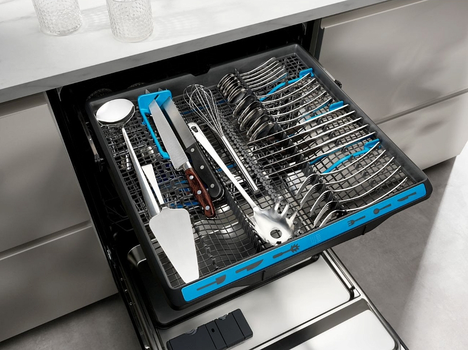 MaxiFlex — инновационная третья корзина для столовых приборов в посудомоечных машинах Electrolux, обеспечивающая максимальную вместительность и гибкость. Благодаря выдвижным секциям и адаптивной конструкции, её можно легко настроить под любую посуду — от мелких ложек до крупных ножей и кухонных аксессуаров. Это не просто органайзер — это решение, которое повышает эффективность мойки и упрощает загрузку даже самых нестандартных предметов.