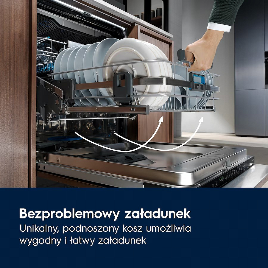 Верхняя корзина FlexiLift и нижняя корзина ComfortLift позволяют легко загружать и выгружать посуду, а также регулировать высоту корзин для удобства использования. Держатели для чашек и стаканов SoftSpikes и SoftGrip обеспечивают безопасное размещение посуды во время мытья.