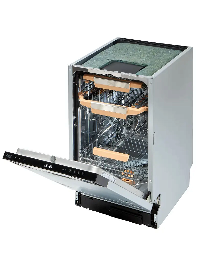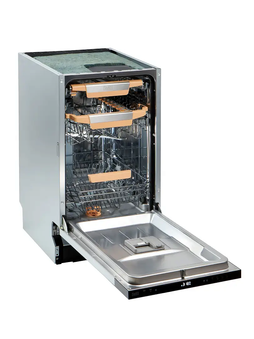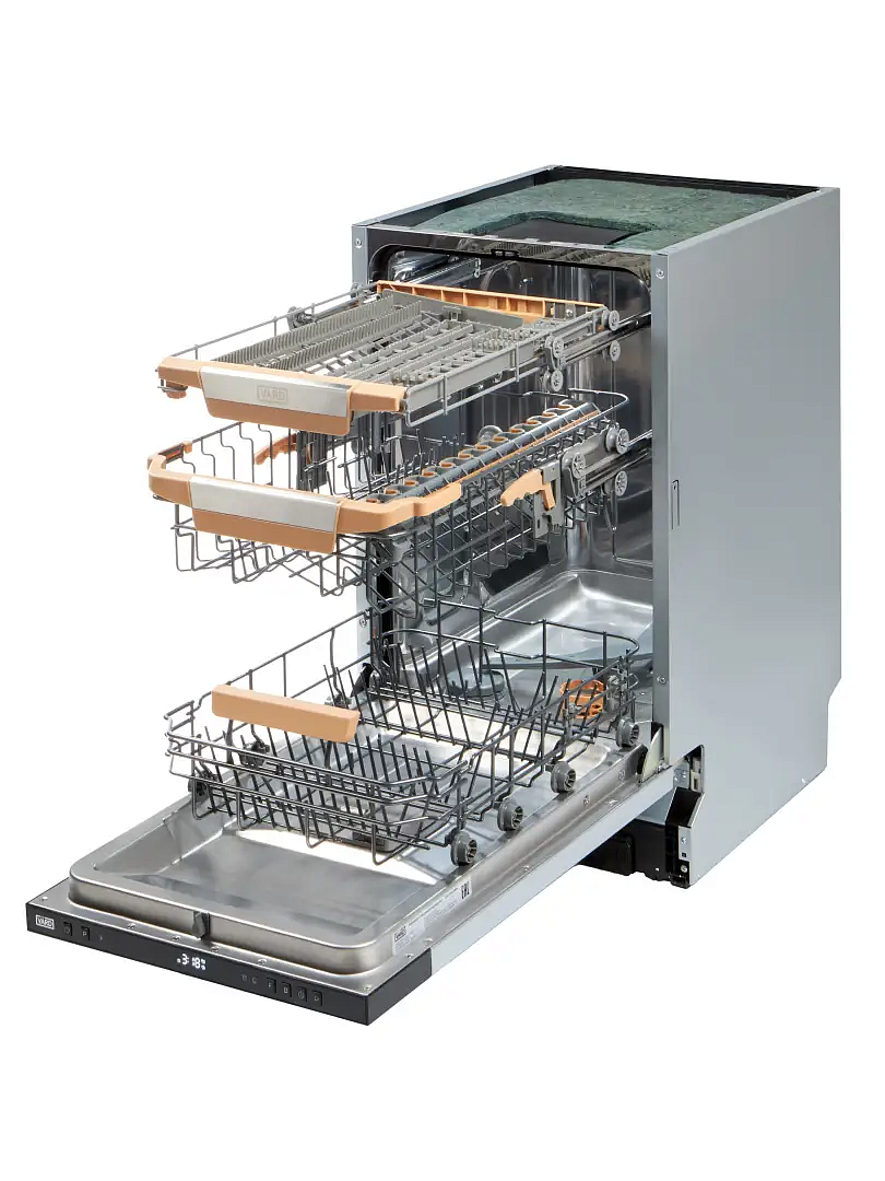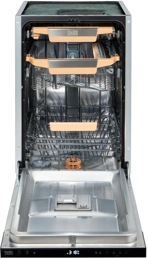Встраиваемая посудомоечная машина VARD VDI451C обладает продуманным обликом и функциональностью, рассчитанными на активную жизнь современной семьи; серый корпус выглядит сдержанно и универсально, вписывается в разные интерьеры, при этом компактные габариты — высота 81.5 см, ширина 44.8 см, глубина 55 см — позволяют установить прибор в узкую нишу, сохранив полезное место на кухне.
