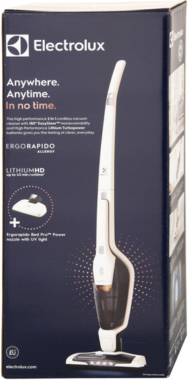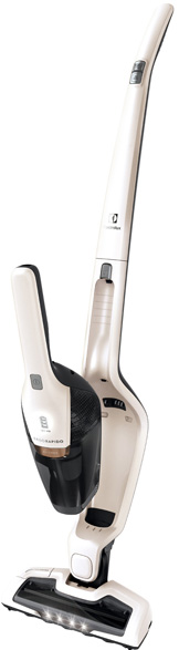 Electrolux EER7ALLRGY — это маневренная модель 2 в 1 с вертикальным и ручным пылесосом. Тубро-щетка оборудована светодиодной подсветкой, которая подсвечивает места уборки, и специальным лезвием BrusshRollClean, которое срезает скопившийся мусор в процессе уборки и он сразу же попадает в контейнер. Зарядки в течение 4 часов хватит на 45 минут работы.