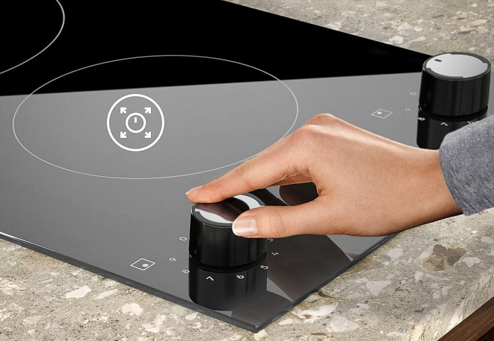• Управление осуществляется при помощи поворотных регуляторов, которые позволяют выставить 9 различных ступеней нагрева.