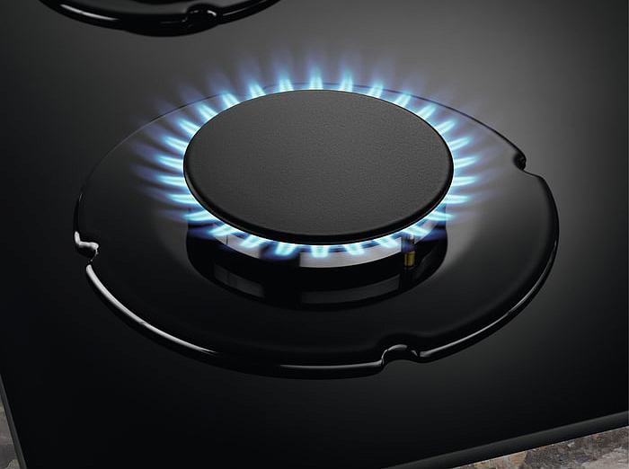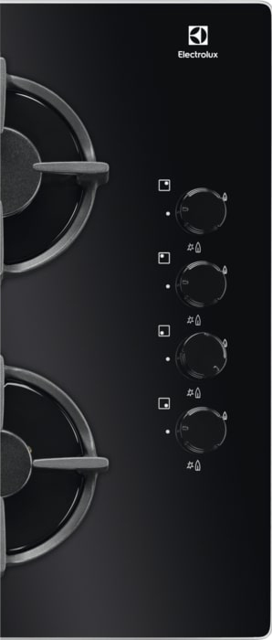 Варочная панель Electrolux GPE264EK черного цвета оборудована двумя стандартными конфорками, слабой и мощной горелками. Панель управления находится с правой стороны. Подача газа прекращается при погасании пламени. Поверхность из стеклокерамики легко очищается. Чугунные подставки надежно удерживают посуду.