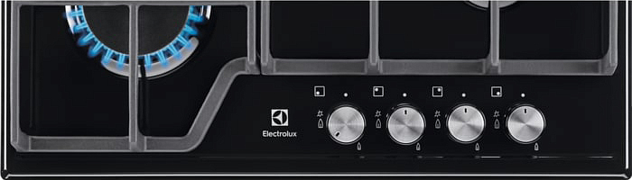 Electrolux GRE263MB — варочная панель с поверхностью из эмалированной стали черного цвета. Модель оборудована двумя стандартными конфорками, малой и повышенной мощности. Панель управления сдвинута вправо, чугунные решетки разного размера и конфигурации позволяют удобно разместить посуду. Газ-контроль обеспечивает безопасность использования.
