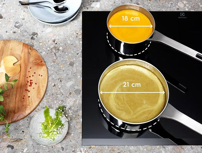 Функция объединения зон нагрева Bridge позволяет соединить две или более зоны в одну большую область, что идеально подходит для крупногабаритной посуды, такой как утятницы, гриль-сковороды или большие кастрюли. Это обеспечивает равномерное распределение тепла по всей поверхности посуды, улучшая качество приготовления. Такой подход расширяет возможности приготовления и делает устройство универсальным решением для разных кулинарных задач.