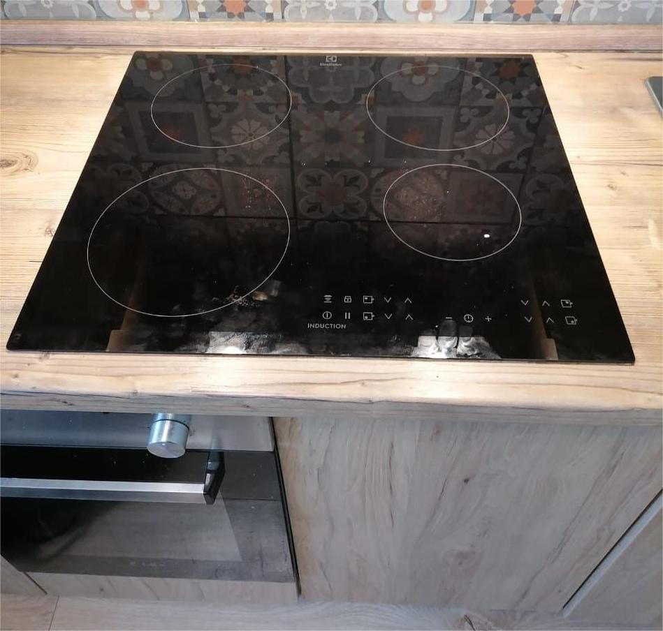 Стеклокерамическая поверхность имеет гладкую и ровную текстуру, которая не только придает панели стильный внешний вид, но и делает её удобной в уходе. Она устойчива к высоким температурам, что позволяет быстро нагревать посуду, обеспечивая равномерное распределение тепла. Стеклокерамика обладает высокой прочностью, хотя и требует аккуратного обращения с тяжелыми предметами. Такая поверхность придаёт кухне современный и элегантный вид, легко интегрируясь в различные стили интерьера.