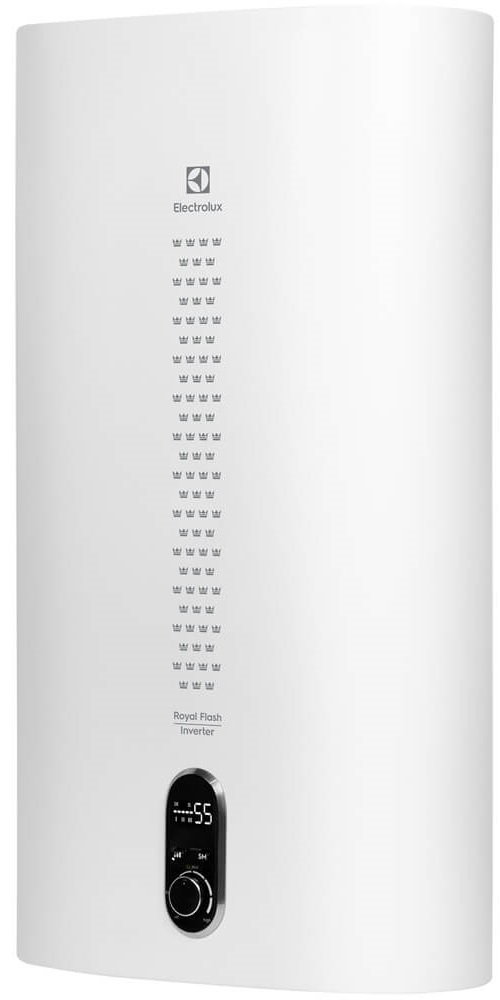 Водонагреватель Electrolux EWH 80 Royal Flash Inverter — это наглядное воплощение современного прогресса в области бытовой техники. Отличительной чертой данного прибора является его элегантный и современный дизайн. Белый металлический корпус в форме прямоугольника с гладкими линиями идеально впишется в любой интерьер, будь то домашняя ванная комната или офисный санузел. Устройство имеет удобные размеры: высота составляет 89,5 см, ширина — 55,5 см, а глубина — 35,5 см. Это позволяет установить его в любом удобном месте, вне зависимости от планировки помещения. Благодаря настенному способу крепления, водонагреватель можно установить как вертикально, так и горизонтально.