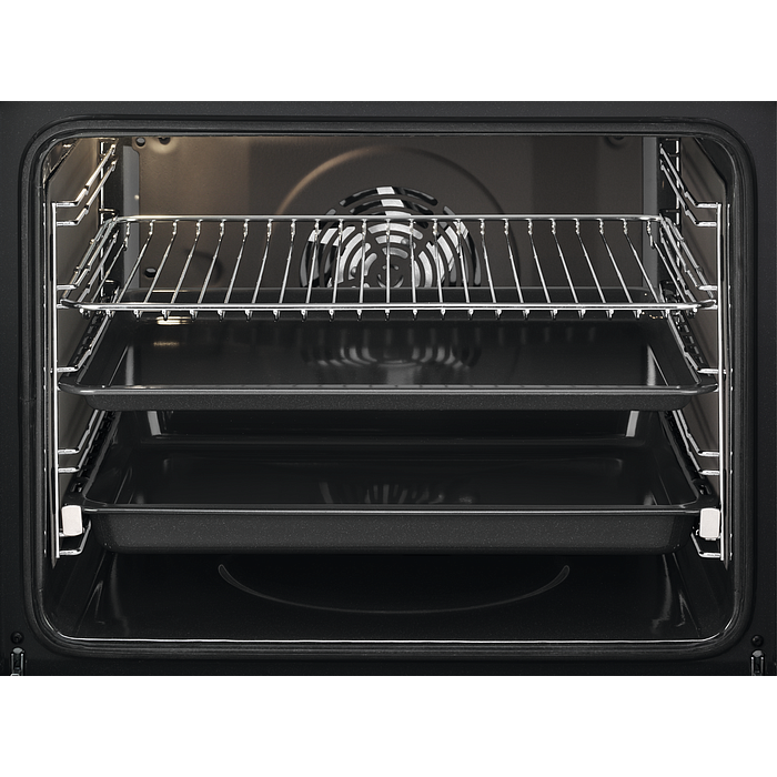 При включении духового шкафа вентилятор охлаждения автоматически запускается, обеспечивая своеобразную воздушную подушку вокруг прибора, которая предохраняет его внешние поверхности от перегрева, что не только позволяет избежать ожогов и деформации кухонного гарнитура, но и помогает сократить теплопотери, а значит и снизить расход электроэнергии при приготовлении пищи.