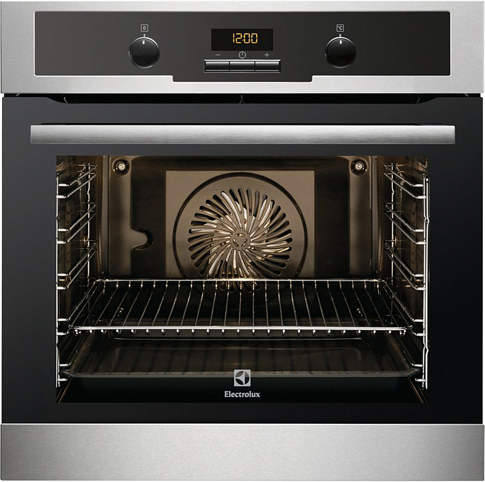 Встраиваемый духовой шкаф Electrolux EOB55450AX выполнен из нержавеющей стали со специальным покрытием против отпечатков пальцев. Модель отличается большим объемом внутренней камеры, имеет 5 уровней расположения противней и 8 режимов нагрева. Конструкция предусматривает наличие цифрового дисплея для удобного контроля работы. Настройка параметров осуществляется при помощи утапливаемых переключателей.