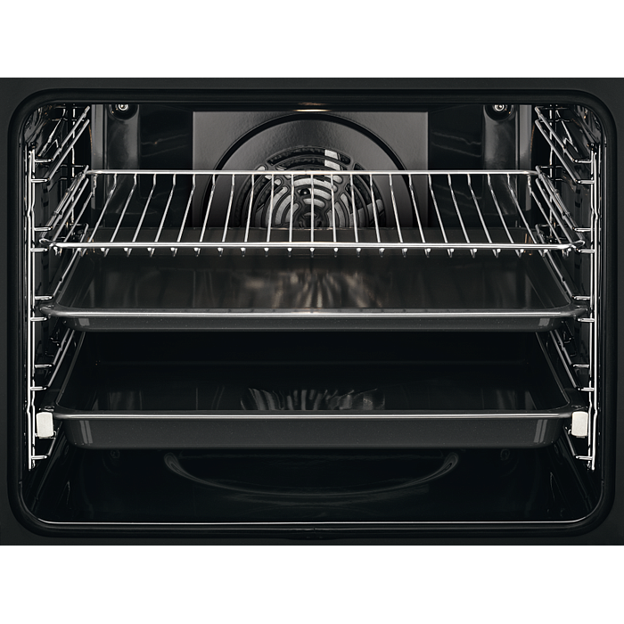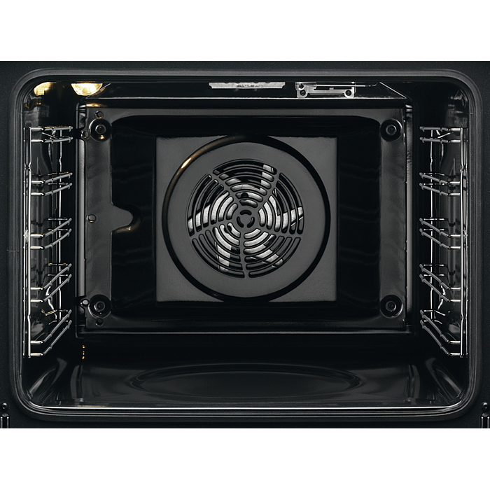 При включении духового шкафа вентилятор охлаждения автоматически запускается, обеспечивая своеобразную воздушную подушку вокруг прибора, которая предохраняет его внешние поверхности от перегрева, что не только позволяет избежать ожогов и деформации кухонного гарнитура, но и помогает сократить теплопотери, а значит и снизить расход электроэнергии при приготовлении пищи.
