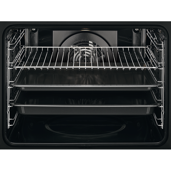 Духовой шкаф Electrolux EOB93402AX предназначен для встраивания в нишу шириной 56 см, что значительно экономит место даже на небольшой кухне. Модель выполнена из нержавеющей стали в соответствующем цвете со специальным покрытием AntiFingerPrint. Модель предусматривает наличие 6 режимов нагрев, среди которых гриль и конвекция с кольцевым нагревом. Модель отличается вместительностью, объем внутренней камеры составляет 72 литра. Кроме того, конструкция предусматривает наличие пяти уровней для противней, однако готовить одновременно можно только на трех.