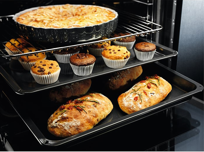 Электрический духовой шкаф EOD3C70TK обладает функцией SteamBake, которая позволит готовить как в пекарне. Влажность поможет тесту полностью подняться, позволяя добиться восхитительно нежной мякоти, а сухой нагрев придает корочке насыщенный хруст. Вы оцените не только великолепную выпечку, но и жареную курицу и рыбу. Система каталитической очистки позволит распрощаться с наслоениями жира и остатков пищи. Система самоочистки начинает работать автоматически по достижении духовым шкафом температуры в 250 °C. Светодиодный дисплей с таймером позволяет с легкостью отслеживать состояние блюд. Он также позволяет задать точное время приготовления и следить за готовящимися блюдами.