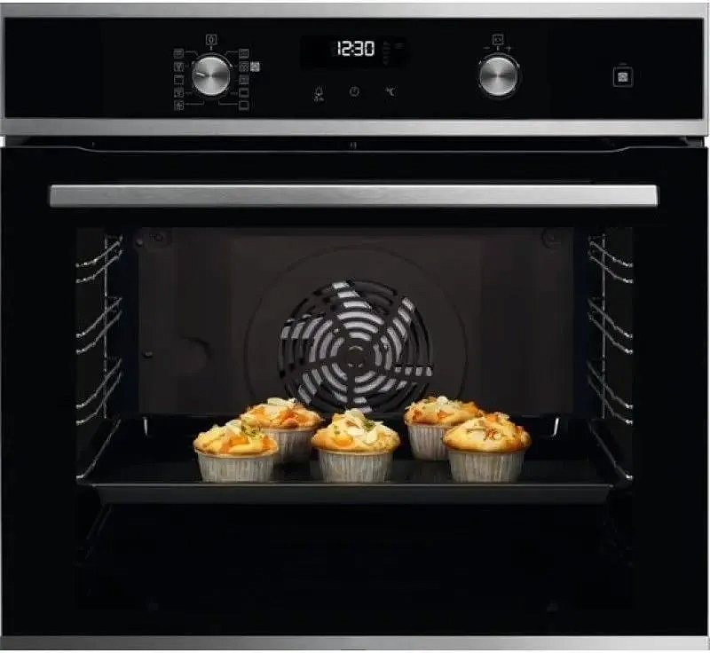 Благодаря функции SteamBake, которая сочетает горячий воздух и пар, можно приготовить идеально румяный хлеб или другие выпечки. Влажная конвекция обеспечивает равномерное распределение тепла, сохраняя при этом влажность продуктов. Управление осуществляется с помощью поворотных сенсорных переключателей, а на дисплее отображается вся необходимая информация. Дверца духовки откидная и оснащена системой плавного закрытия, что предотвращает ее случайное закрытие и повреждение. Для удобства очистки духовой шкаф оснащен каталитической системой. Автоматическое отключение и вентилятор охлаждения обеспечивают безопасность использования. В комплект входят два противня и одна решетка, а также термощуп для контроля температуры приготовления.