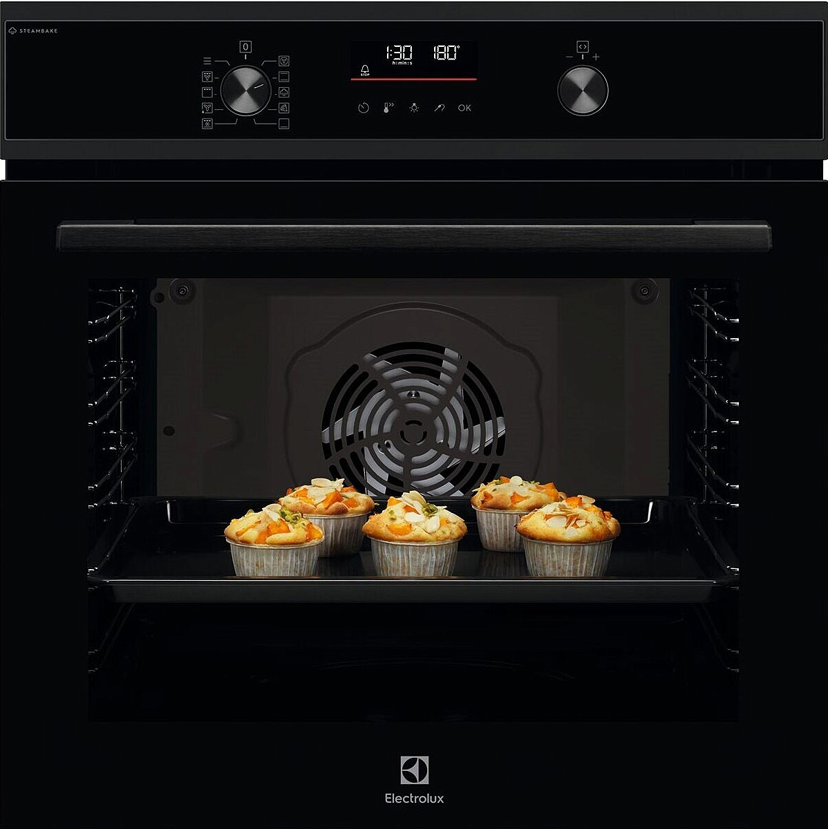 Управление реализовано через информативный дисплей в сочетании с поворотными сенсорными переключателями, что обеспечивает точность настроек и приятный тактильный опыт. Наличие таймера, индикации остаточного тепла и защиты от детей повышает безопасность и удобство работы, а вентилятор охлаждения поддерживает стабильную температуру корпуса при интенсивной эксплуатации. Для освещения камеры используется галогенная лампа, которая равномерно подсвечивает пространство и помогает контролировать процесс без частого открытия дверцы.