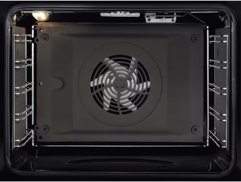 При включении духового шкафа вентилятор охлаждения автоматически запускается, обеспечивая своеобразную воздушную подушку вокруг прибора, которая предохраняет его внешние поверхности от перегрева, что не только позволяет избежать ожогов и деформации кухонного гарнитура, но и помогает сократить теплопотери, а значит и снизить расход электроэнергии при приготовлении пищи.