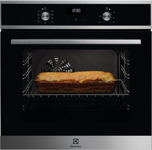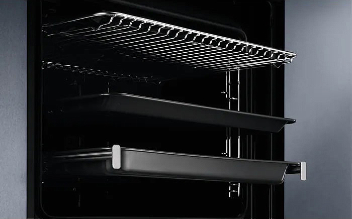 Electrolux Intuit EZF5C50X SurroundCook — встраиваемый многофункциональный духовой шкаф, ширина 59,4 см, глубина 56 см, объем 57 л, с принудительной циркуляцией воздуха, замком для защиты от детей, класс энергопотребления A. Вентилятор обеспечивает постоянную циркуляцию горячего воздуха, обеспечивая равномерное распределение температуры. Циркуляция горячего воздуха позволяет выпекать на 3-х уровнях одновременно.