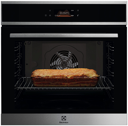 Духовой шкаф Electrolux LOE8F38X изготовлен в элегантном корпусе из нержавеющей стали подчёркивает современный минимализм и подчёркивает статус кухни, одновременно обеспечивая практичность в уходе; аккуратная передняя панель со встроенным дисплеем и сенсорными переключателями выглядит сдержанно и обеспечивает интуитивное управление. При глубине 56.9 см, ширине 55.9 см и высоте 59.4 см прибор легко интегрируется в стандартную нишу 60 х 56 х 55 см, сохраняя общую композицию мебельного решения. Серия 700 сочетает высокий уровень отделки и инженерных решений, позволяя сочетать приборы в едином стиле, а тонкая рамка и матовая текстура металла минимизируют видимость отпечатков и мелких загрязнений. Трёхслойная дверца с тремя стеклами поддерживает эстетику и безопасность, а механизм плавного закрывания делает эксплуатацию комфортной и безшумной.