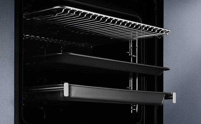 При включении духового шкафа вентилятор охлаждения автоматически запускается, обеспечивая своеобразную воздушную подушку вокруг прибора, которая предохраняет его внешние поверхности от перегрева, что не только позволяет избежать ожогов и деформации кухонного гарнитура, но и помогает сократить теплопотери, а значит и снизить расход электроэнергии при приготовлении пищи.