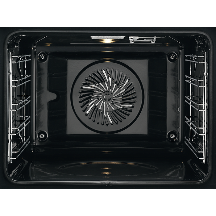 При включении духового шкафа вентилятор охлаждения автоматически запускается, обеспечивая своеобразную воздушную подушку вокруг прибора, которая предохраняет его внешние поверхности от перегрева, что не только позволяет избежать ожогов и деформации кухонного гарнитура, но и помогает сократить теплопотери, а значит и снизить расход электроэнергии при приготовлении пищи.